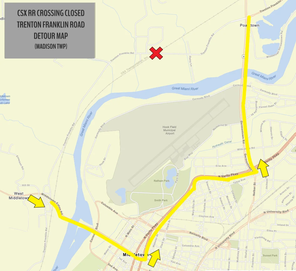 We were informed that CSX closed Trenton Franklin Road at the railroad crossing between S.R. 4 and Browns Run Road for an emergency rail repair on Sunday, February 1, 2026.