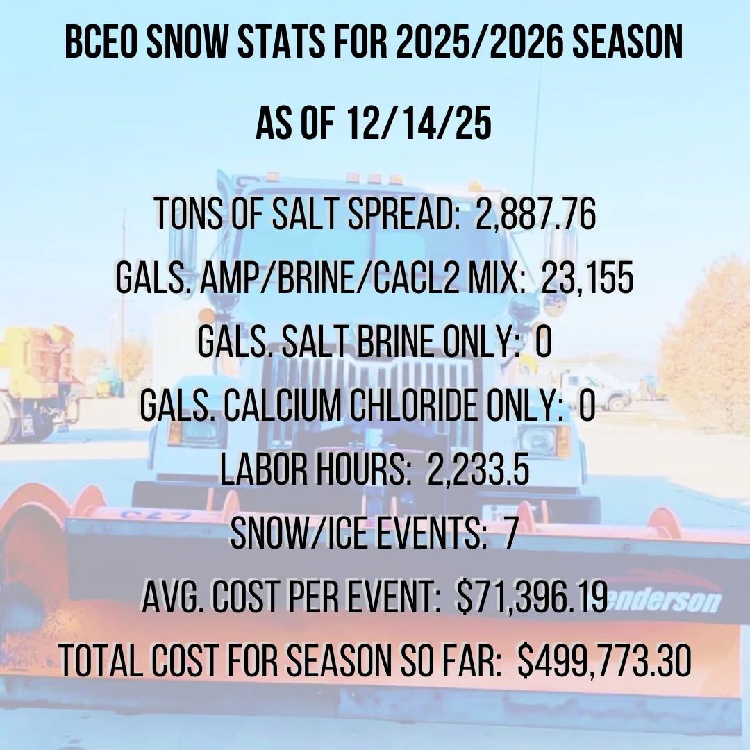 - BCEO has a 13,000-ton salt storage facility – 2 barns hold 6,500 tons each.